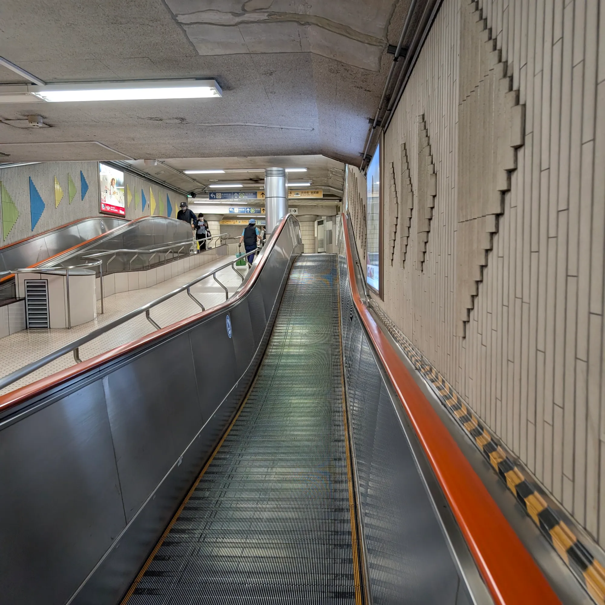 しかも傾斜が付いていて、空港とかにあるようなベルトのものではなく、普通のエスカレーターのようにブロックで構成されてる感じでした。