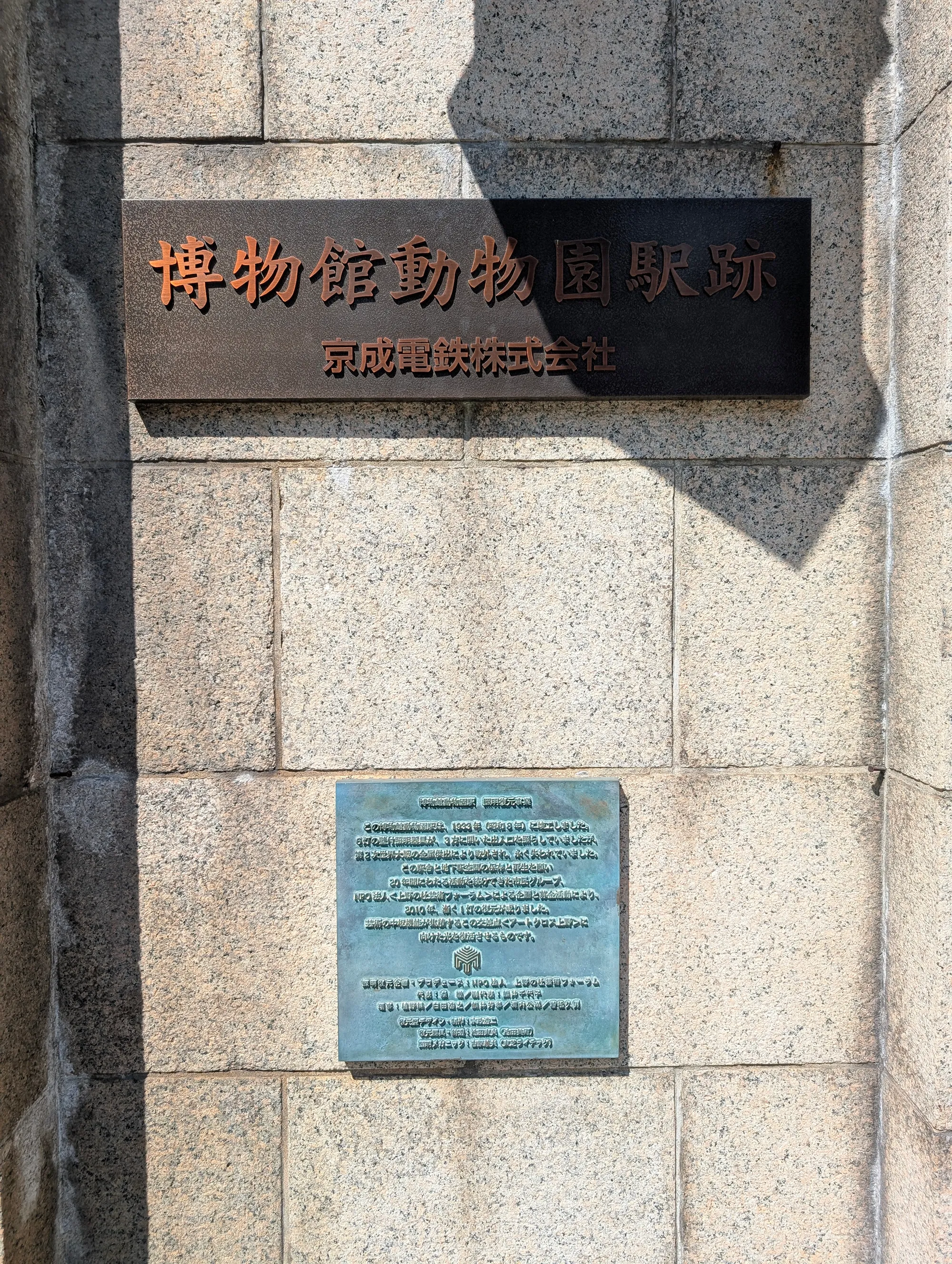 上野公園まで来ました。だいぶ毛色が違う建物がありましたが、これが博物館動物公園駅跡らしい。