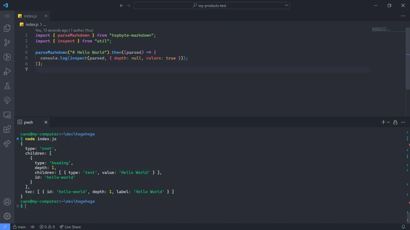Tepbyte.dev で使用している、マークダウンパーサです。