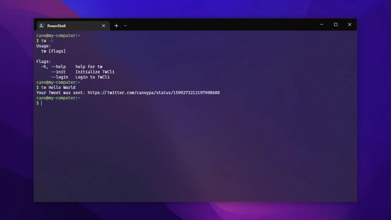 つぶやくことだけにフォーカスを当てているため、余計な機能は一切実装せず、サブコマンドやオプション無しに、つぶやきたい内容だけを入力して投稿出来るようになっています。